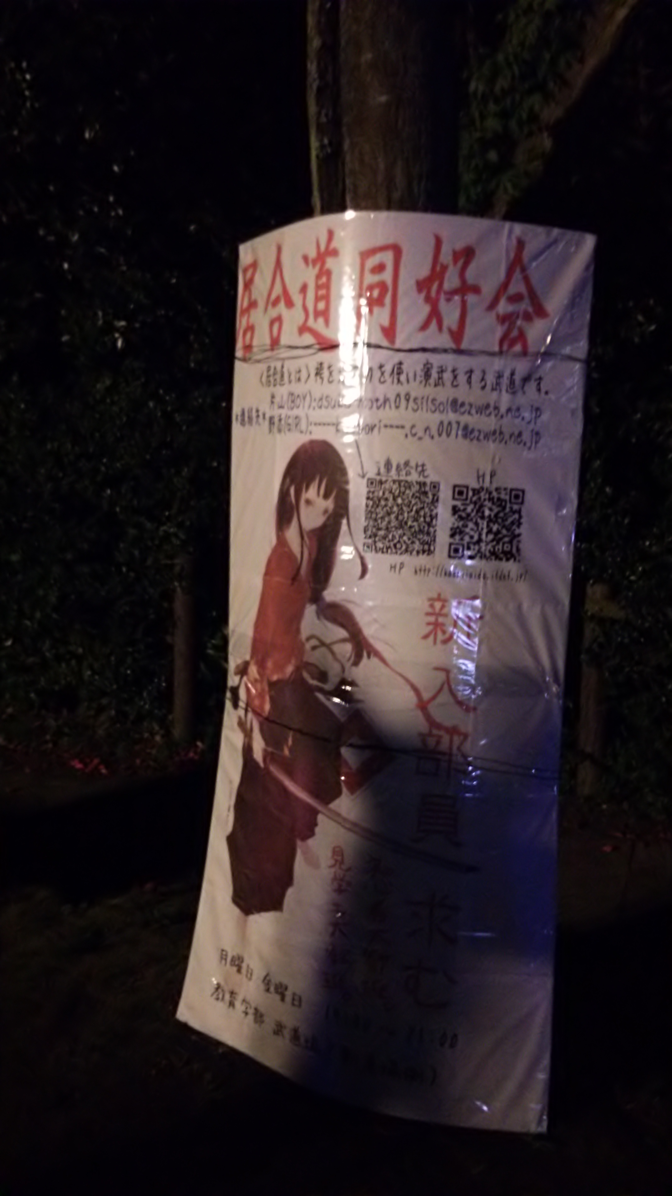 中央食堂前においてあるので、ぜひ立寄ってみてください。 女の子が刀持っている看板です。