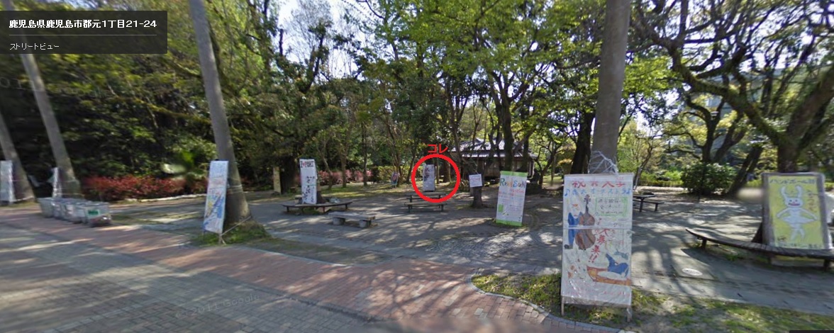 今年は立て看板に変化がありました。例年の設置場所は理学部前の林の中でしたが(グーグルのストリートビューより赤い丸の所in2011) 拡大図は・・・あった!!